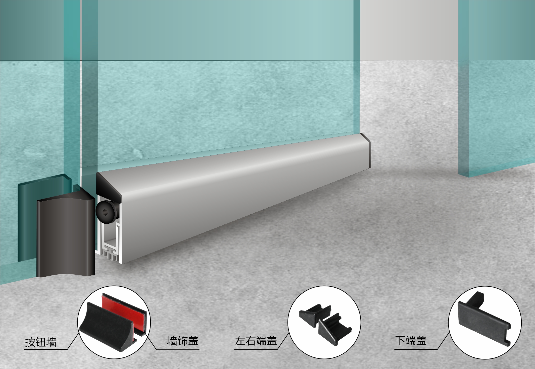 為平開純玻璃門,鋁合金窗框玻璃門,不銹鋼框玻璃門,木框玻璃門特別設(shè)計(jì)的門底自動(dòng)升降式密封器。附件配套齊全,能適應(yīng)有門框或無門框的玻璃門。帶磨砂表面的正面和背面的鋁合金裝飾條,產(chǎn)品表面無螺絲,平整美觀。