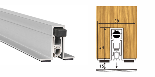 嵌入式防火門底自動升降式密封器,M型彈簧結(jié)構(gòu),適用于門扇內(nèi)開槽的門。安裝時需在門底有一個34mm*14mm的通槽,將產(chǎn)品放置其中,從產(chǎn)品的翼上固定,并將裝飾端蓋板用螺絲裝上,使用本產(chǎn)品不影響門的整體風(fēng)格。